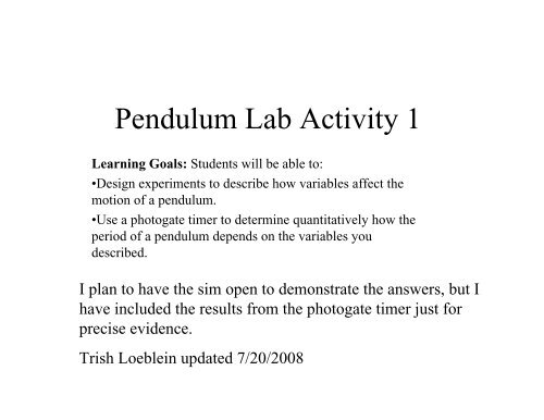 Pendulum Lab Activity 1 Phet Day And Night Activities Worksheet
