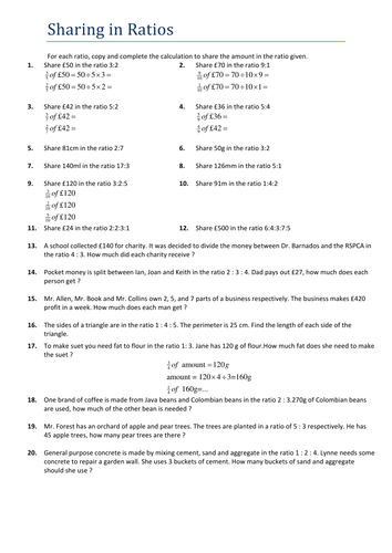 Sharing In Ratio Worksheet Teaching Resources Sullivan Ballou Letter Worksheet