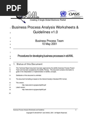 Business Process Analysis Worksheets Business Process Specification Technical Standard Money Review Worksheet