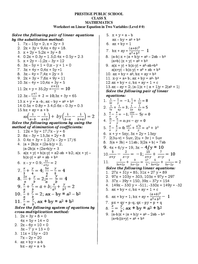 92976410 Linear Equation In Two Variables Numbers Equations Money Money Money Worksheet Answers