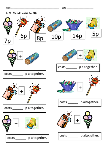 Money Worksheets Totals And Change Teaching Resources Number 1 Handwriting Worksheet