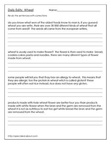 Edit Writing Worksheet, Paragraph Proofing And Editing Printable Writing Worksheets Paragraph Worksheets Sentence Correction Worksheets Writing Worksheets
