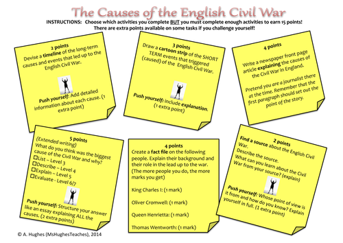 - Causes Of The English Civil War Choose Your Own Homework Menu Teaching Resources Art And Design Worksheet,
