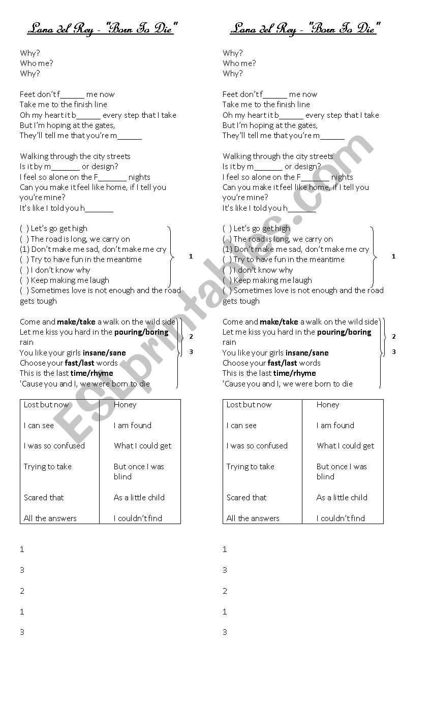 Lana Del Rey Born To Die Esl Activities Esl Worksheet By Bellaldu Brochure Template Worksheet Free