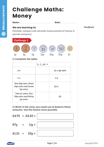 - Money Y4 Measurement Maths Challenge Teaching Resources