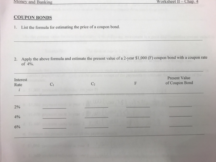 Solved Money Banking And Worksheet Ll Chap 4 Coupon Bond Chegg Com Alphabet Test Worksheet