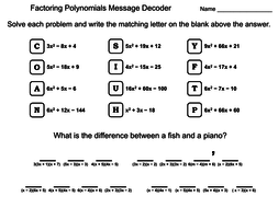 - Factoring Polynomials Activity Math Message Decoder Teaching Resources