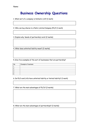 Private Limited Company Ltd Public Limited Company Plc Limited Liability Ppt Worksheets Teaching Resources Phonics Worksheet Wh