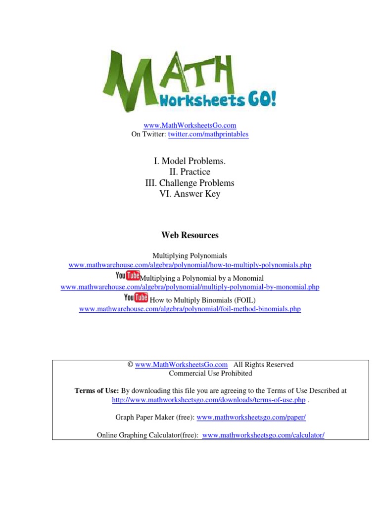 Find, Read, And Discover Free Worksheet Multiplying Polynomials, Such Us:
