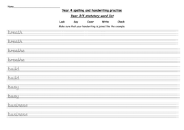 Year 4 Statutory Words Handwriting Practise Worksheets Teaching Resources Learning The Color Blue Worksheets