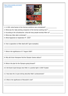 Questions To Support The Documentary Hitler In Colour Teaching Resources Activities Worksheets