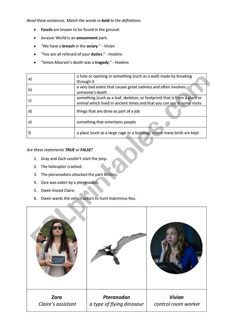 Jurassic World Movie Worksheets Esl Worksheet By Bronbron Alphabet Worksheet For Pre K