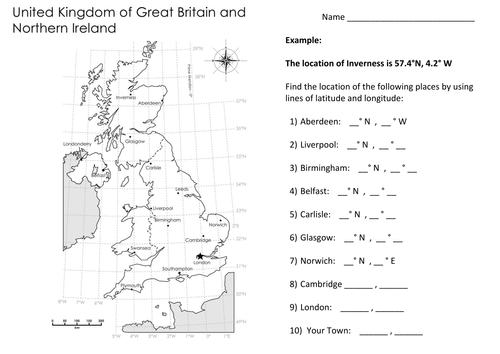Latitude And Longitude Locate Uk Cities Teaching Resources Grade 4 Science Worksheet