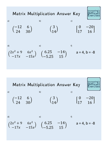 Increasingly Difficult Questions Matrix Multiplication Teaching Resources Phonics Worksheet Year 3