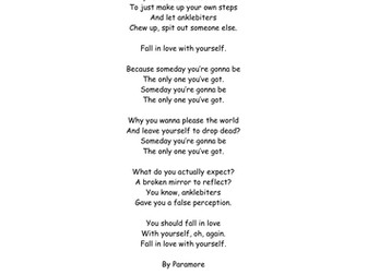 Popular Contemporary Song Lyrics Poetry Lessons Teaching Resources Web Design Worksheet
