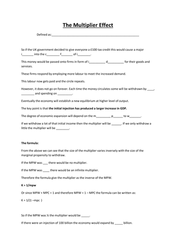 The Muliplier Effect Worksheet Teaching Resources Winter Season Worksheet