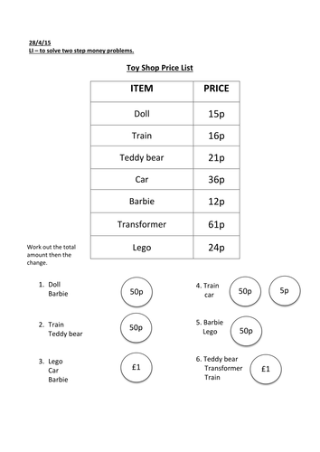 Money Worksheet Tes, Copy Of Money Lessons Tes Teach