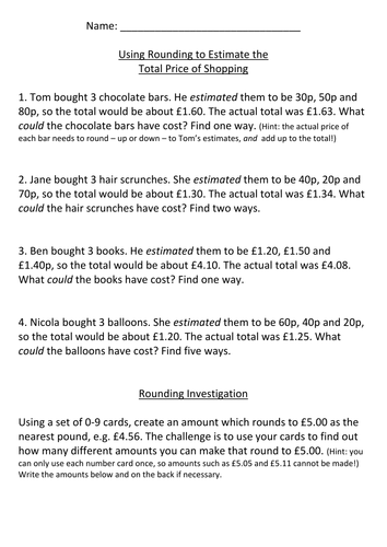 Rounding Money Worksheet Teaching Resources Rooms Activities Worksheet