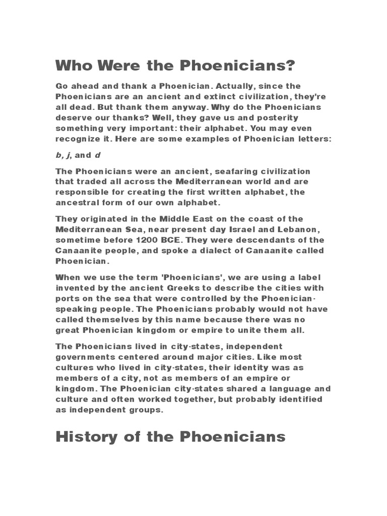 History Of The Ancient Phoenicians Printable Outline Student Handouts Looking At Art Worksheet