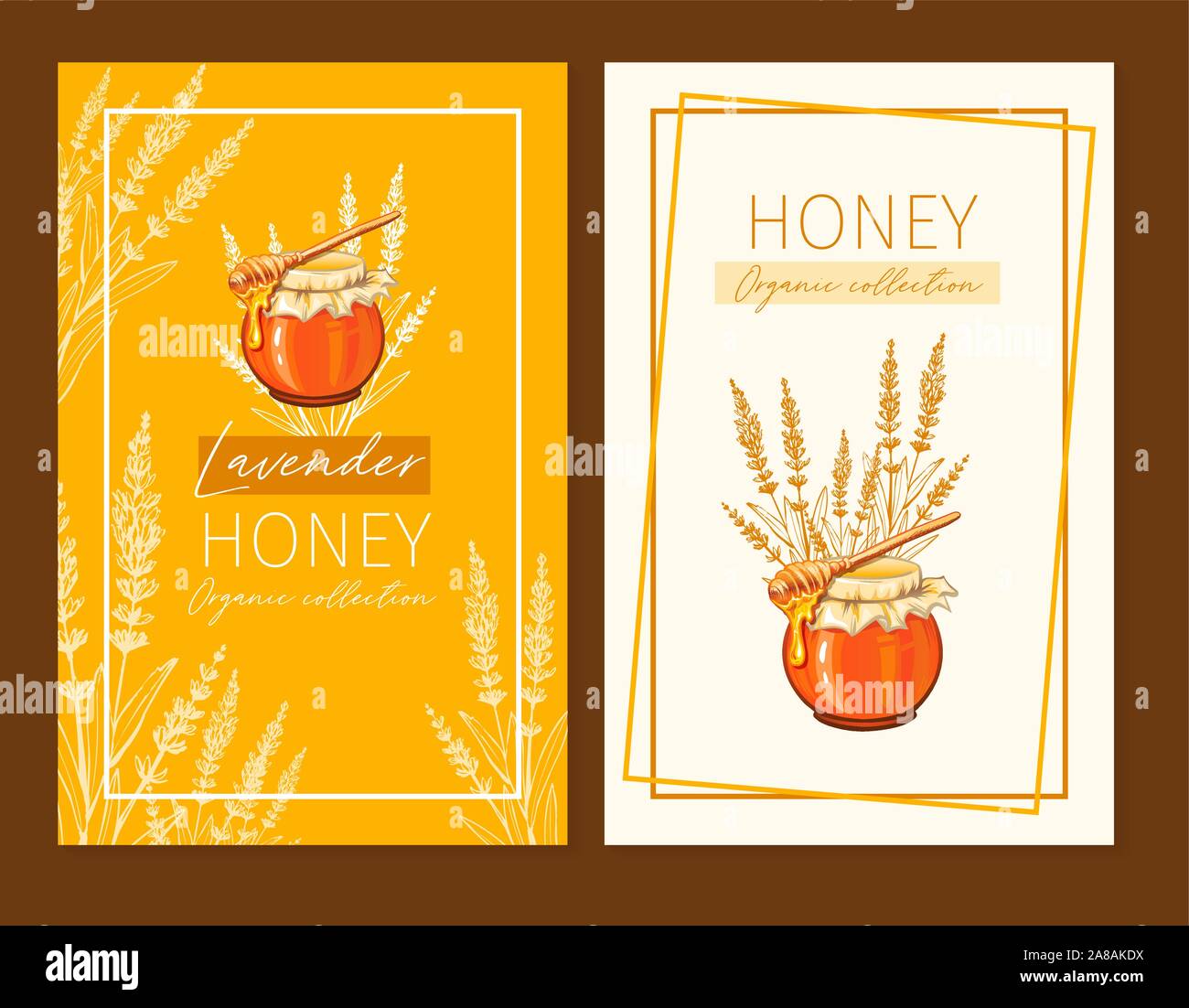 - Honey Vintage Banners Design Engraved Lavender Honey Flower With Glass Honey Jar And Drop Hand Drawn Orange Logo Templates Set Sketch Printable Poster For Branding Or Layout Design Stock Vector Image