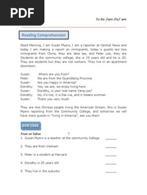 39576 Reading Comprehension Verb To Be 1 Reading Years Worksheet