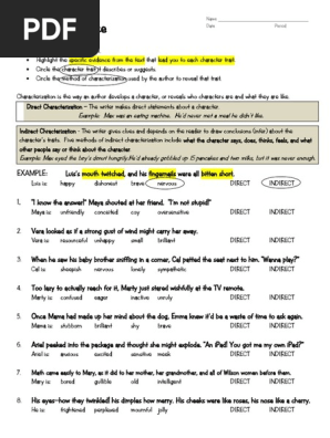 - Indirect Character Traits Worksheet Answers Promotiontablecovers