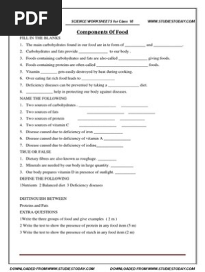 - Cbse Class 6 Worksheet Components Of Food Vitamin Dietary Fiber