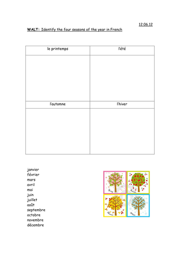 Ks2 French Seasons Activities Teaching Resources Handwriting Worksheets Blank Pdf