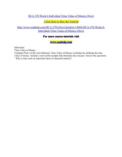 Hca 270 Week 6 Individual Time Value Of Money New Uophelp Grocery Color Worksheet