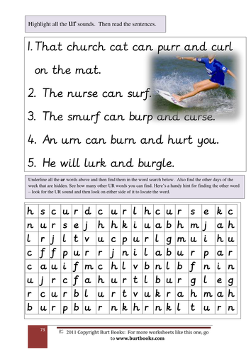 Phonics Ur Sentences And Wordsearch Teaching Resources Alphabet Letter Recognition Preschool Worksheets