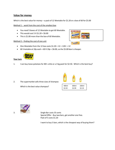 Value for money worksheet ks3 Indeed lately has been sought by users around us, perhaps one of you personally. People now are accustomed to using the internet in gadgets to view video and image information for inspiration, and according to the name of the post I will discuss about Value For Money Worksheet Ks3.