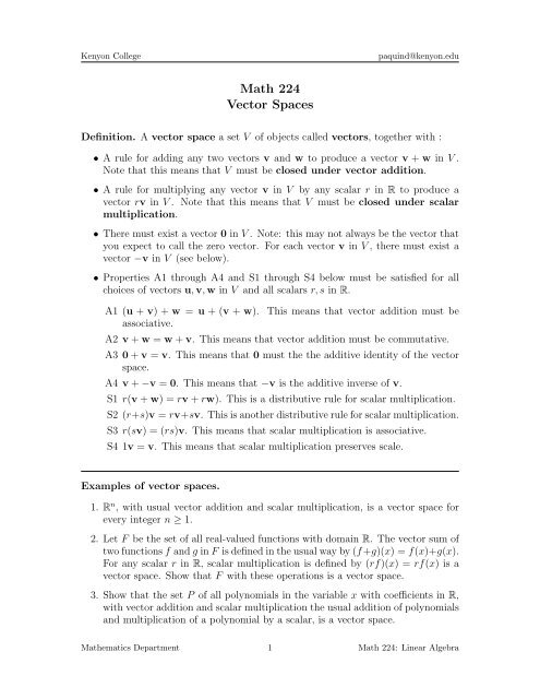 In Class Worksheet On Vector Spaces Kenyon College Decimal Art Worksheet