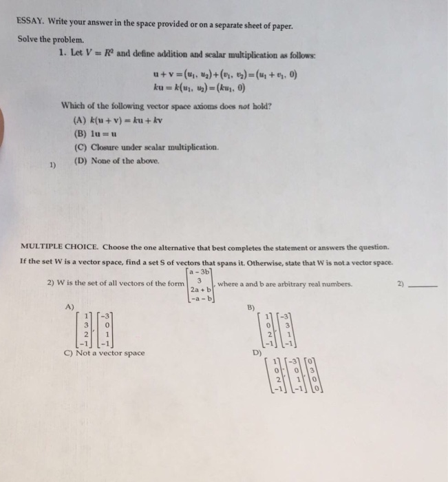 - Man 102 Tutorial Sheet 1 Linear Algebra Vector Spaces And Subspaces Spring Semester 2016 17 Vector Space Linear Subspace