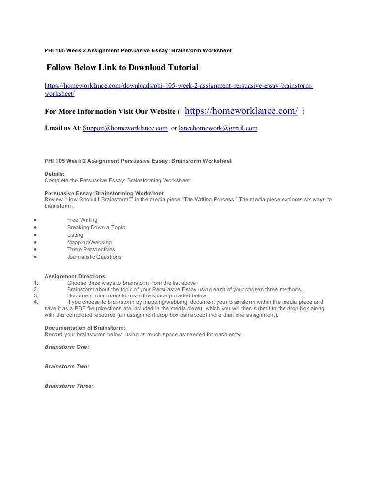 Phi 105 Week 2 Assignment Persuasive Essay Brainstorm Worksheet Nursery Class English Worksheet