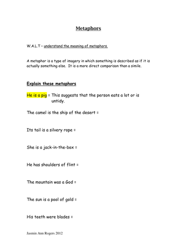 Metaphors Worksheet Teaching Resources English Alphabet Worksheet For Nursery Pdf